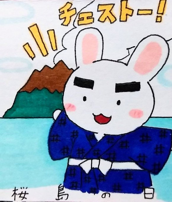 おはよう御座います。TAMA-METALちゃんからです。今日の記念日は 『桜島の日』 1914年鹿児島県の桜島で史上最大の大噴火が始まりました。35人の死者を出し流出した溶岩によって対岸の大隅半島と地続きになりました #桜島の日 #イラスト #絵描きさんと繋がたい #イラスト好きと繋がりたい #일러스트