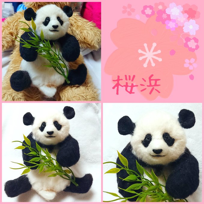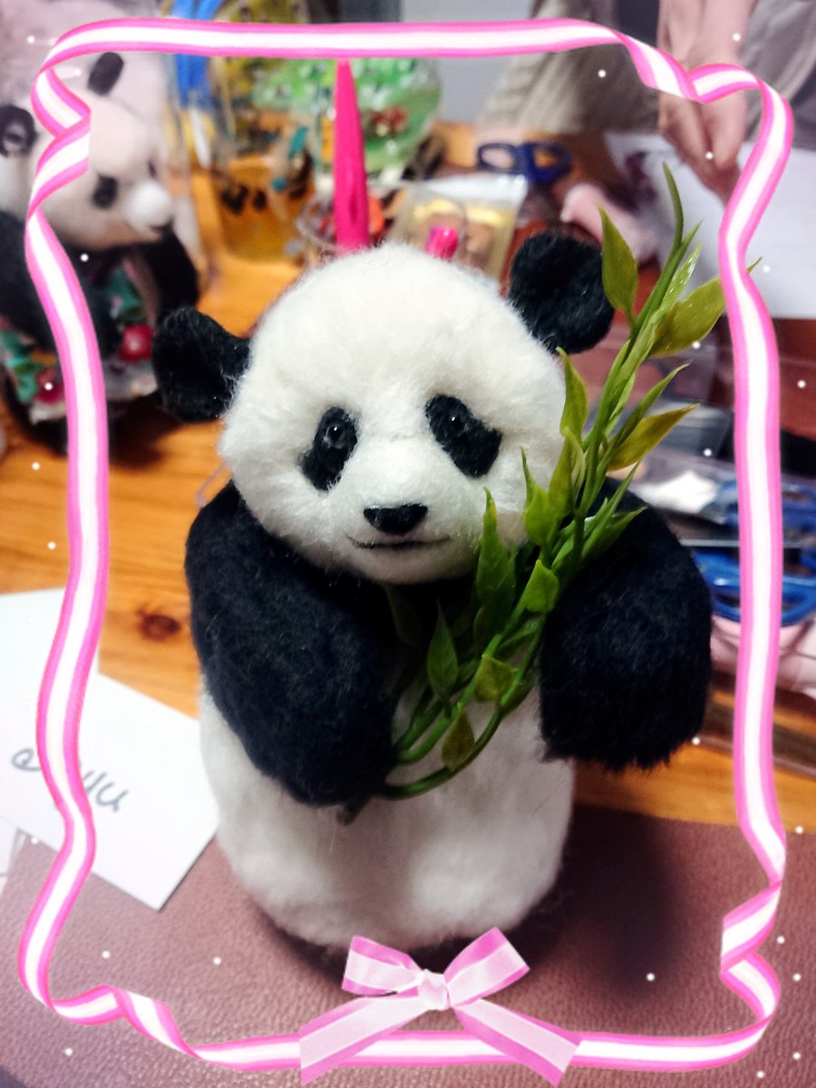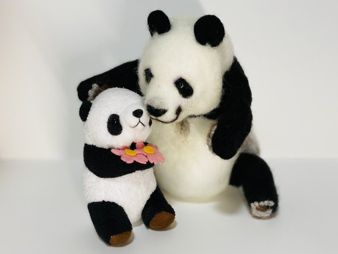 久々にリアルパンダでーす💕 まだ細かな修正や肉球はしてませんがこんな感じです❣️ 実物はお腹めっちゃ大きいし、とにかくデカイです😅💧 #羊毛フェルト #桜浜 #アドベンチャーワールド #ジャイアントパンダ