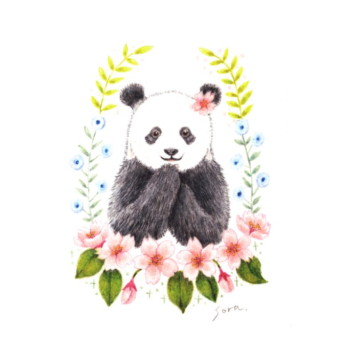 Twitterがなんかおかしくない? バグってる? 桜の花に囲まれた桜ちゃん🌸 色鉛筆で描きました✏️ 桜ちゃんはお耳が大きくて本当にかわいいね❤️´- #ありがとう永明いってらっしゃい桜浜桃浜 #桜浜 #パンダ #イラスト #アドベンチャーワールド