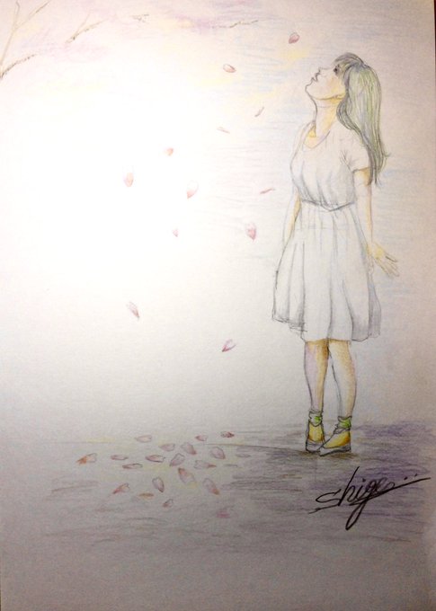 〜名残りの桜〜 今朝は色鉛筆を使って、散り始めた桜を描いてみました。散り始めた桜。名残り惜しいですよね。 #色鉛筆画 #イラスト #桜舞い散る #絵を描いている人と繋がりたい #絵が好きな人と繋がりたい