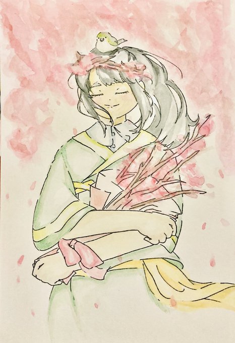 満開の桜の中、彼女は微笑んでいた‥。西行寺幽々子を描きました。たぶん冥界の公式描写がなく、栗林公園みたいかなと思いながら幻想万華鏡の背景を拝借しました。 #東方Project #東方イラスト #イラスト #イラスト好きな人と繋がりたい #アナログイラスト #ボールペン画 #西行寺幽々子 #桜2023