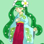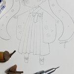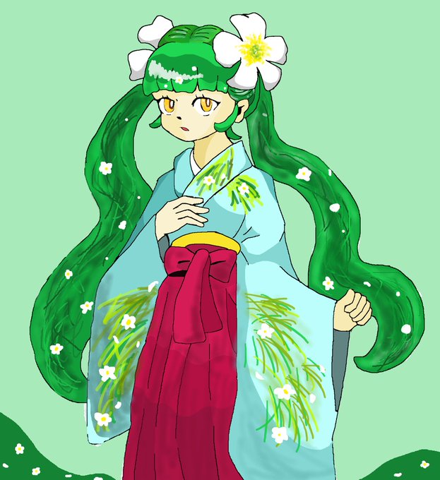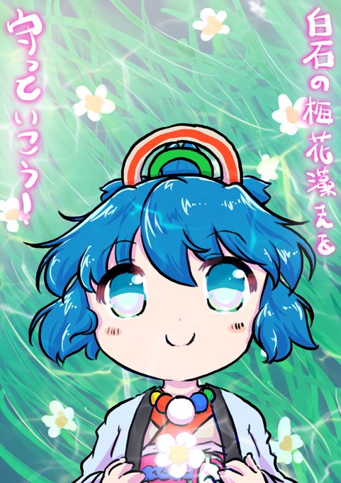 「白石梅花藻姫と猫」 白石梅花藻姫が側にやってきた黒猫とお話しをしてるところを描いてみました! #オリジナルイラスト #白石梅花藻姫 #梅花藻 #白石市 #掘割 #片倉家中旧小関家武家屋敷 #透明水彩 #Watercolor #水彩画 #水彩 #アナログイラスト