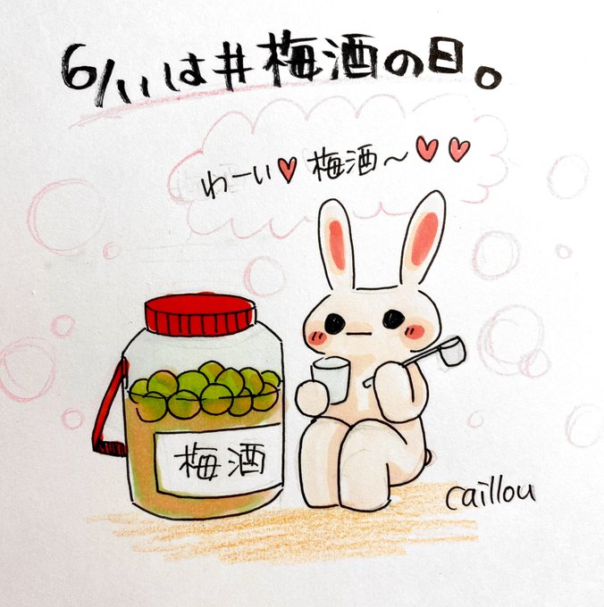 本日は「#梅酒の日」ですよ♪ 仕込んだ梅酒が変化していく様子を見るのも、けっこう楽しいよ😊 #イラスト #今日は何の日 #絵描きさんと繋がりたい #イラスト好きさんと繋がりたい #ゆるいイラスト #illustration