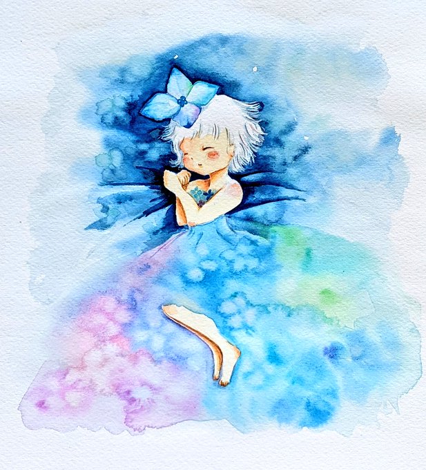 あじさいちゃんは雨の夢を見る 今日も暑くなりそうです💦梅雨は終わったのかなぁ… #イラスト #梅雨のカラフル芸術祭2022 #初夏の創作クラスタフォロー祭り #みんなで楽しむTwitter展覧会