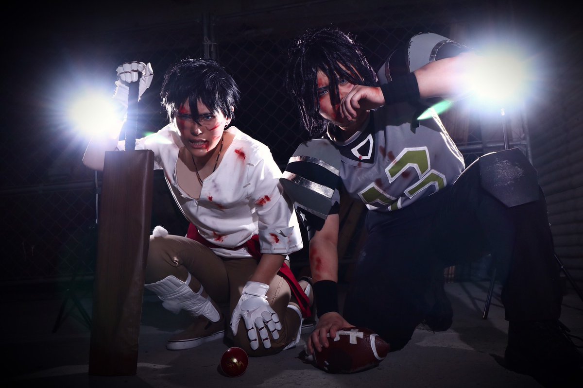⚠血糊注意⚠ ※Cosplay【IdentityV/第五人格 スポーツ組】 絶対に負けない オフェンス…和翔 バッツマン…雷蓮(@rairen_1028) photo…梟羽ちゃん(@ohige_wasshoi) #kzkycos #梟羽ふぉとぼっくす