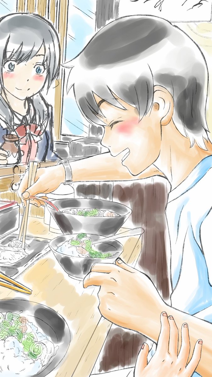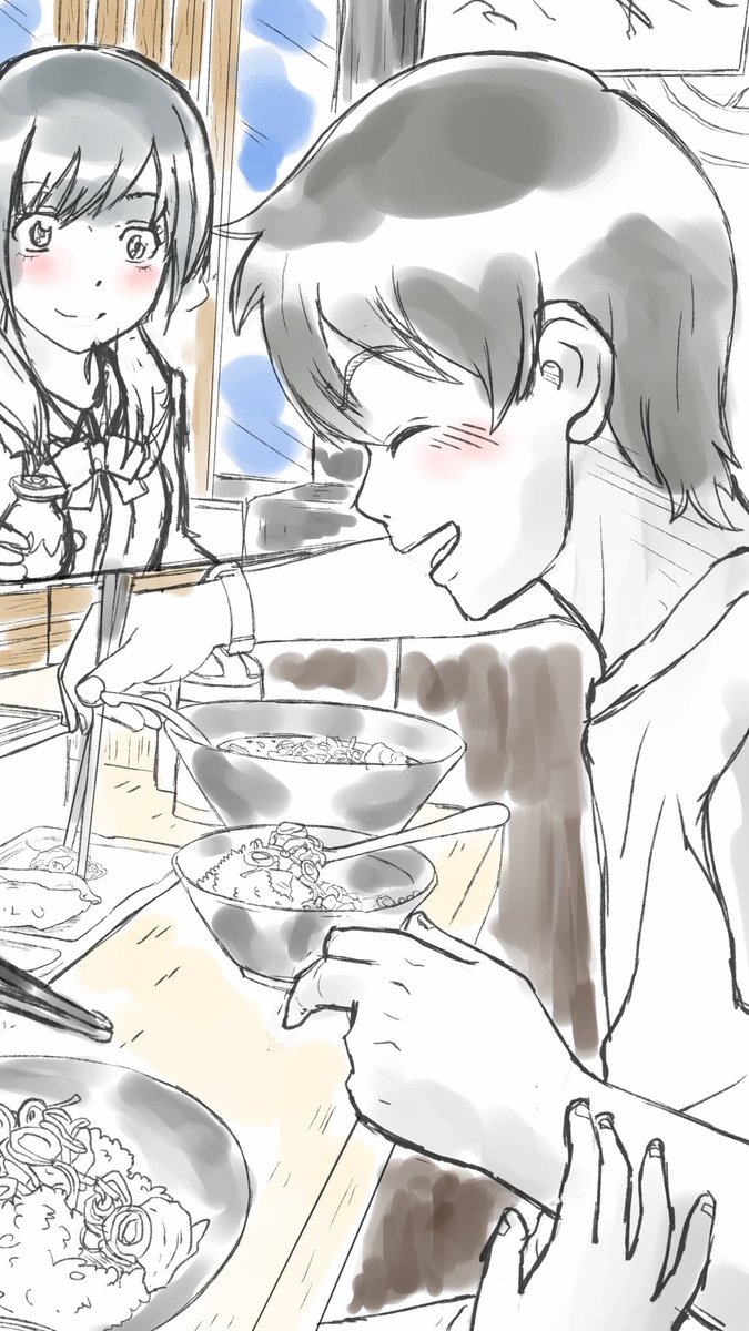 今日のお絵描き 続き #森嶋帆高 と #天野陽菜 の食事 左手ツール無事到着😵💨 安心して作業に集中できたぞ! #自由軒 #天気の子 #絵描きさんと繋がりたい #イラスト #イラスト好きさんと繋がりたい #アーニャ・フォージャー #ヨル・フォージャー #スパイファミリー