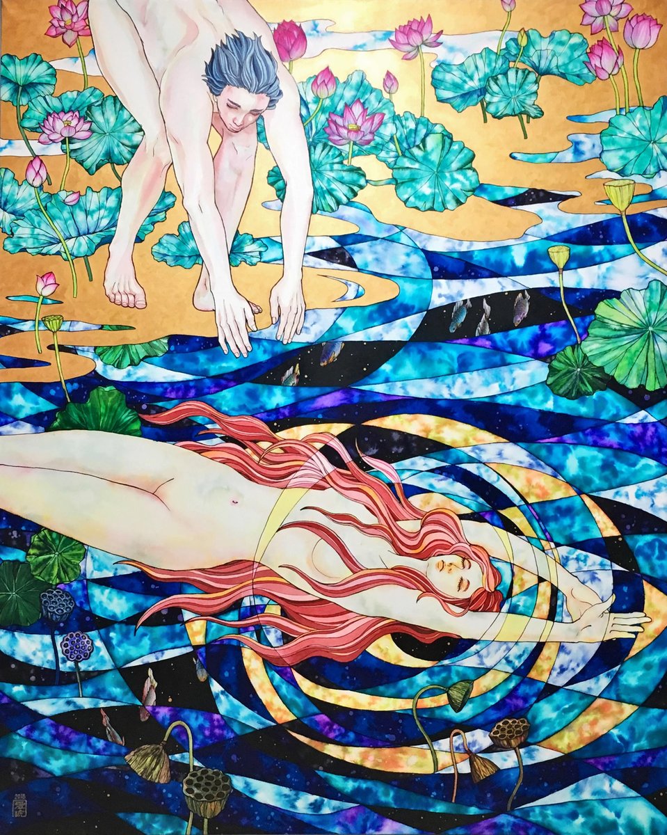 Big Size Art Show in 3D Virtual artisansjp.com/bigsizeart artspaces.kunstmatrix.com/.../big-size-a… Jump in, without knowing this distance - Mixed Media by Aiko Moriki #morikiaiko #paint #illustration #contemporaryart #fantasy #oriental #アート #カラーインク #ファンタジー #幻想画 #森木愛琥