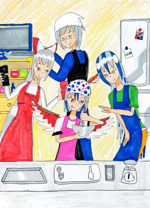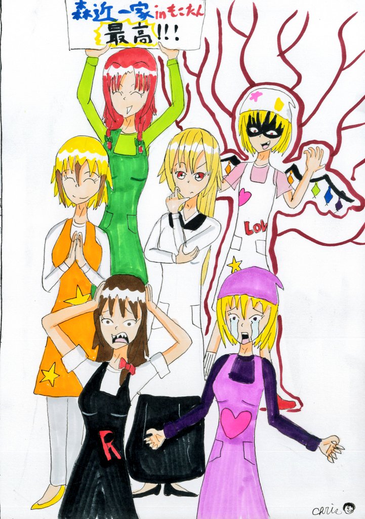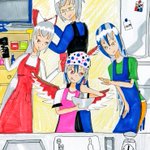「森近一家inもこたん、バレンタインの準備」 バレンタインに向けて準備をする森近一家とその様子に対して様々な感情が入り交じる少女達 #東方Project #森近一家 #森近一家inもこたん #アナログイラスト #コピック