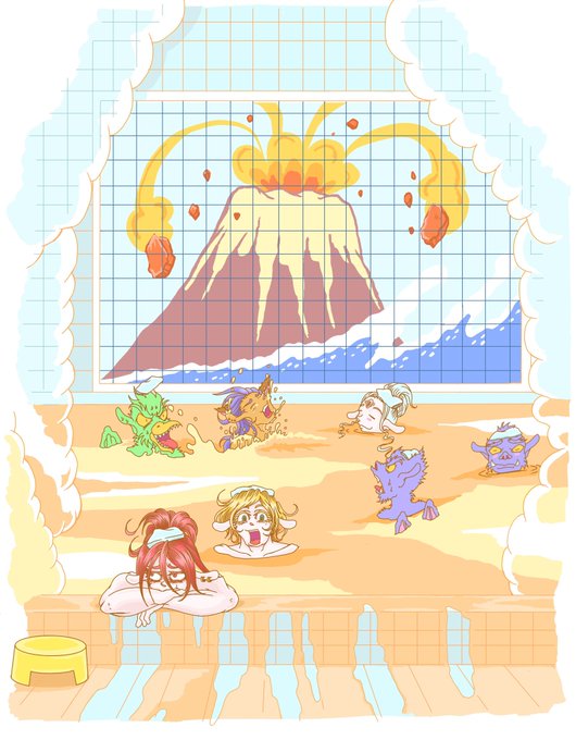 人外と銭湯。 本当に思い付きで描いただけのrkgk…。 #絵描きさんと繋がりたい #ArtistOnTwitter #世界絵師 #創作の狼煙 #アトリエの系譜S #イラスト #doodle #棺ノ王子