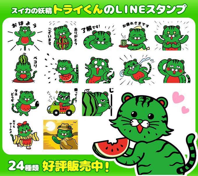 株式会社トライ様のLINEスタンプを描かせていただきました🥳 会話の賑やかしになりそうなものを沢山詰め込んでますので、是非覗いて見てください🌼 ご購入はこちらから🐯🍉store.line.me/stickershop/pr… #lineスタンプ #stamp #キャラクター #猫 #虎 #スイカ #植木 #熊本 #characterart #illustrater