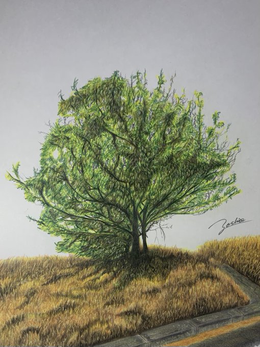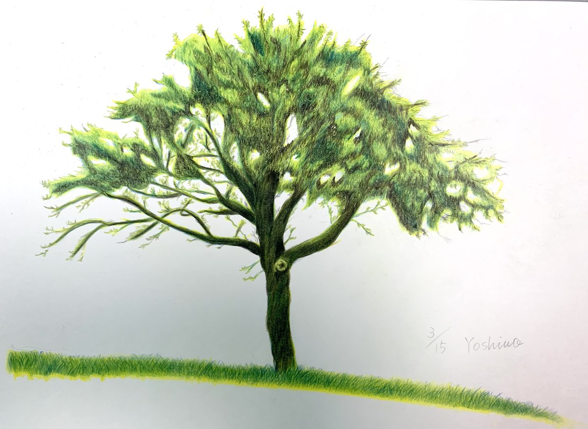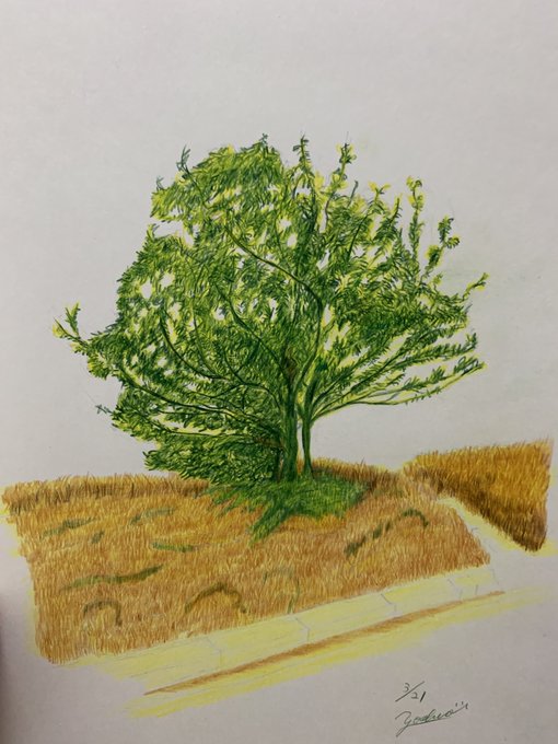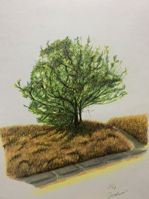 色鉛筆で描いた「植栽」✨ 去年も描いたけど、樹木系は一番苦手ですヾ( •́д•̀ ;)ノぁゎゎ #色鉛筆画 #色鉛筆 #植栽 #樹木 #colorpencil #colorpencildrawing