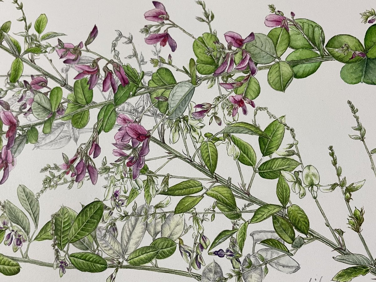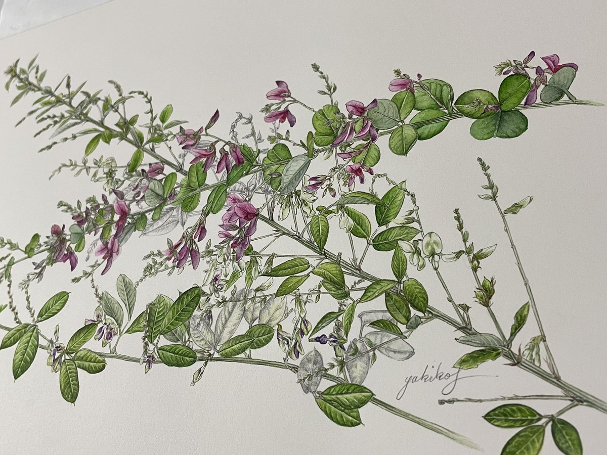 ハギ ミヤギノハギ、白ハギ、キハギ(木ハギ) 花言葉は「思案」「柔軟な精神」 それぞれ特徴が違っていて驚きました。 #絵描きさんと繋がりたい #イラスト好きさんと繋がりたい #水彩画 #botanicalart #植物好きな人と繋がりたい