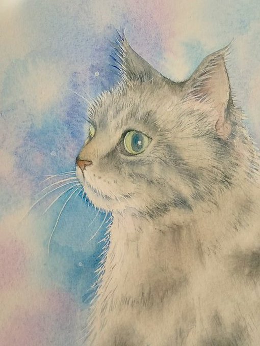 コスモスの水彩画、描き直しました!🌸 雲の遠近感に気をつけて、コスモスはにじませて描きました🤔 #透明水彩 #水彩画 #水彩 #植物画 #風景画 #絵描きさんと繫がりたい #watercolor #アナログ絵描きさんと繋がりたい #painting #art