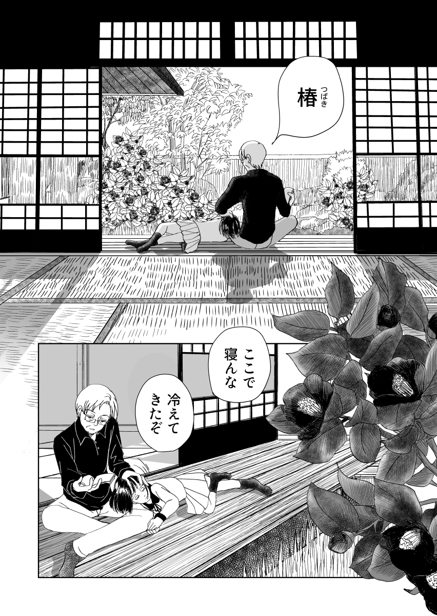 #椿ただ君の髪に触れたくて ①/8 少女とじいじと男子大学生の話 続きはツリーで全部載せます。序盤既読の方スミマセン☆ ※序盤に未公開ページを足した短編はメタパラダイムさんの同人誌「叙情派ひとつ2021」に掲載いただける予定☆ #椿髪 #漫画が読めるハッシュタグ #創作漫画 #アトリエの系譜3