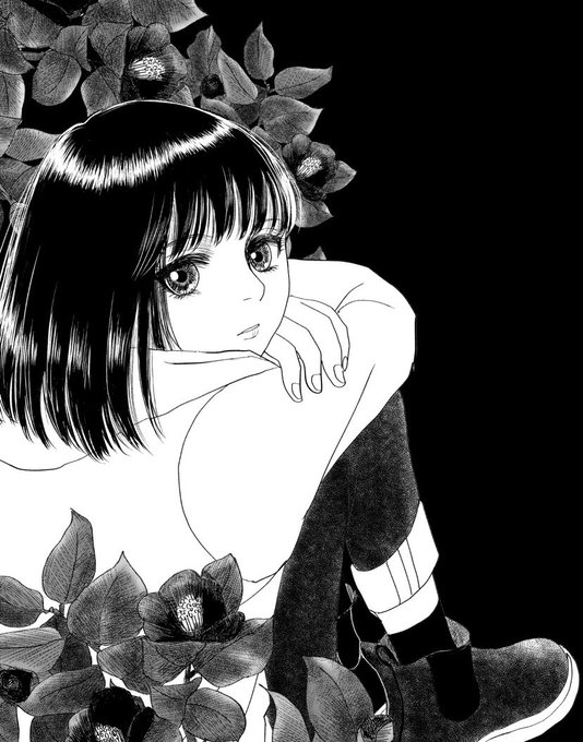 #触りたくなる髪の絵を見せて 自作タグ宣伝で前に描いた読み切り #椿髪 のボツ表紙再掲 今日は休みになったんで、色々やるぞー と書いておくと有言実行になるかとかw もちろん創作だけでは無く、家事とか病院とか買い物とかそういうの含む🪣🧹🛒🏥 椿髪に修正&続きも進めたい‥