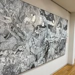 デッカいキャンバスに丸ペンとアクリルインクで線描を描いてます。 #年末年始はSNSなんでも展示会で繋がろう #楠森道剛 #michitakakusumori #ペン画 #pendrawing #artwork #art #hatching