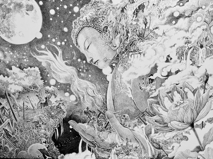 #9月になったのでフォロワーさんに自己紹介しようぜ フォロワーさんが少し増えたので改めまして、キャンバスに丸ペンとアクリルインクを使って線描で絵を描いてます🤗 #楠森道剛 #michitakakusumori #ペン画 #pendrawing #artwork #art #hatching