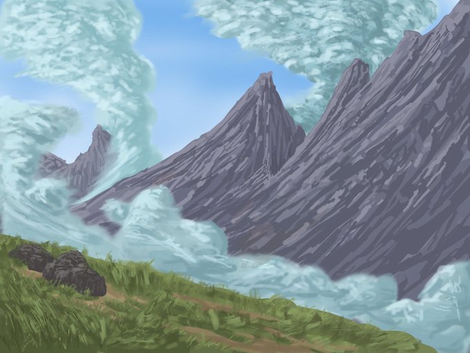 I practiced drawing cloud and mountain. I wonder how I can draw them well.. 雲と山を描きました。どうすればうまく描けるのだろう... #楽背イラスト #背景イラスト #イラスト #風景イラスト #イラスト初心者 #procreate #background #drawings #illustraion