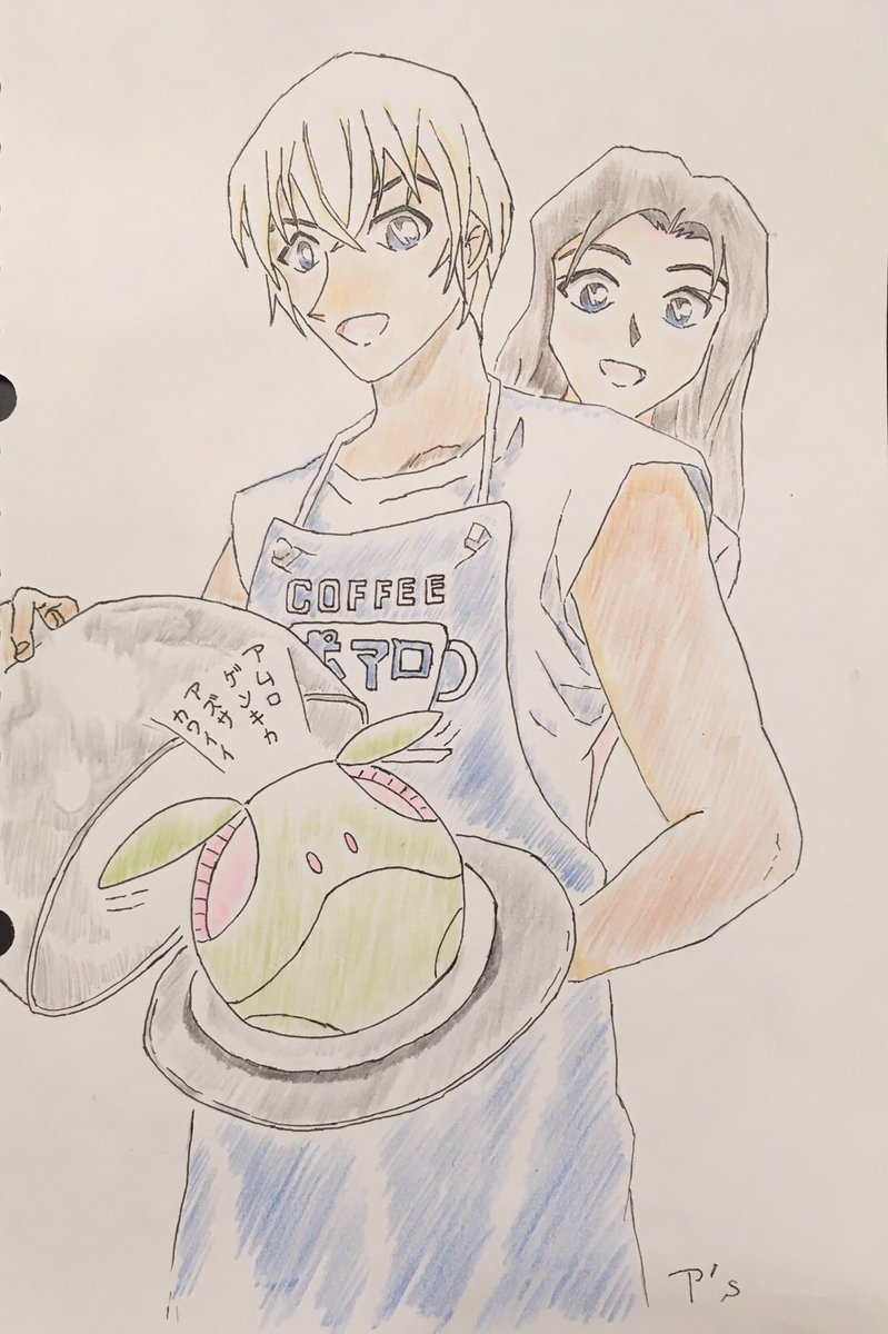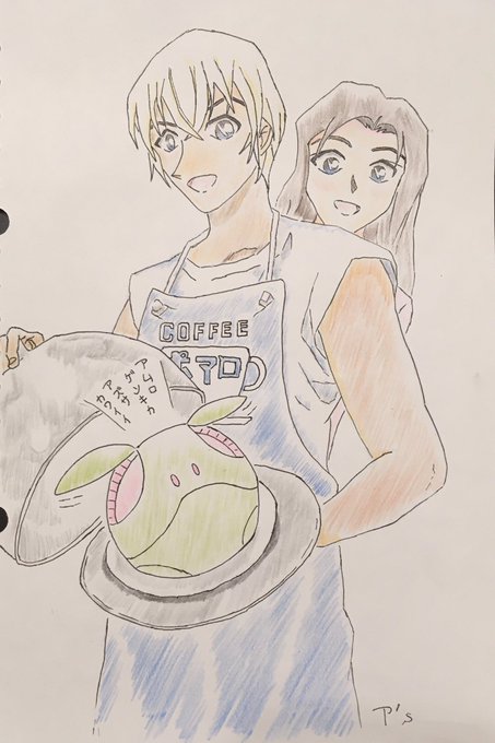 ひさびさに絵をTweet 安室さんとあずささんとハロちゃんと。 あれ?ハロちゃんがちょっと違う🙂 #Twitter交流会会場 #みんなで楽しむTwitter展覧会 #名探偵コナン #安室透 #榎本梓 #ハロ #模写 #色鉛筆画 #絵描きさんと繋がりたい #絵師さんと繋がりたい