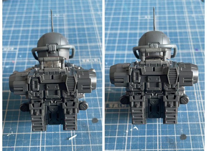 MG 『MS-06R-2ジョニーライデン専用ザク』 リファイン進捗 その2 頭部改修など 🔺首の根元を加工して顎を引けるように 🔺後ろから見るとうなじが丸見えなので、バックパックの位置を上げて、後ろからの見た目を改善 #ガンプラ #プラモデルを楽しんでおります #模型サークルRemix