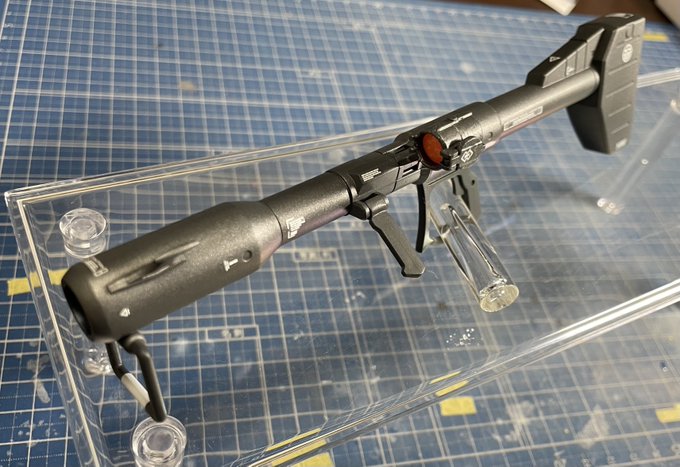 MG 『MS-06R-2ジョニーライデン専用ザク』 リファイン進捗 その3 武器を先に完成させました٩(ˊᗜˋ*)و 🔺再塗装とデカール貼り直し 🔺スコープのレンズをHアイズに変更 #ガンプラ #プラモデルを楽しんでおります #模型サークルRemix