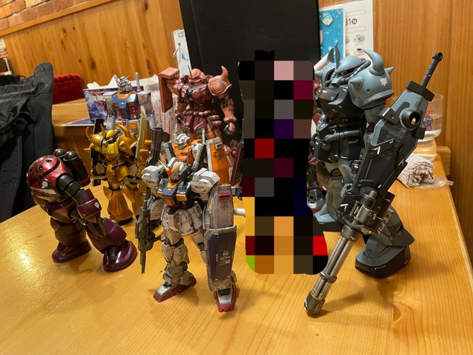 お盆で実家に帰省🚗💨 久しぶりにゆっくり滞在するので、サークル仲間のヒロシさん…もといひろぷんてさん@Hi64roshi64 と密会してきました( *´艸`) 作品を生で見ながら、色々教えてもらいました🤩 とても濃密で楽しい時間でした‼️ ※モザイクは未発表作です😆 #ガンプラ #模型サークルRemix