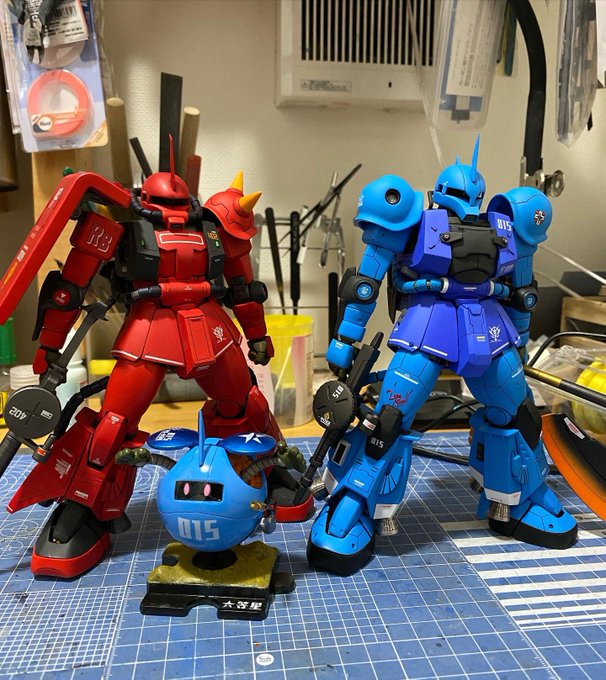 いよいよ明日静岡ホビーショー✨ 模型倶楽部六等星は、西館243にて「ザク十五連星」の企画卓で私は2体を展示させて頂きます開催します。 😊 雨の予報なんで足元滑りやすいのでお気をつけてお越しください✨ #模型倶楽部六等星 #ザク十五連星 #静岡ホビーショー2022
