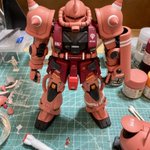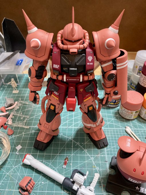 静岡ホビーショーで展示させていただいたMGザク! 「MGシャア専用ザク2.0 Ver.G40」 設定がわからない部分はオリジナルアレンジになってしまいました〜 全部、筆塗りで塗装しておりますが、ピンクの発色とワインレッドのムラ消しに苦戦しました… #静岡ホビーショー2022 #模型倶楽部六等星 #筆塗り
