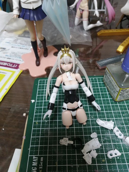 スティレット、メインパーツの仮組み終了。凛々しくて良い☺️ 明日は仕事だけど固定ポーズパーツと小太刀、パーツ処理と洗浄までやりたいかな。 しかし何故カタナ? コラボ元メカがナタみたいの持ってるからか? #メガミデバイス #フレームアームズ・ガール #模型日記