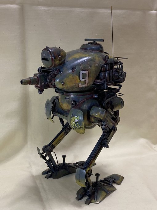 パックレーテ、完成しました。長砲身と短砲身をそれぞれ作りたかったんですが1個しか持ってなかったので、バルカンと合わせて3種の装備を交換式にしました。並べて飾りたいので、再販されたらまた作りたいと思います。 #模型 #プラモデル #筆塗り #マシーネンクリーガー #maschinenkrieger #横山宏