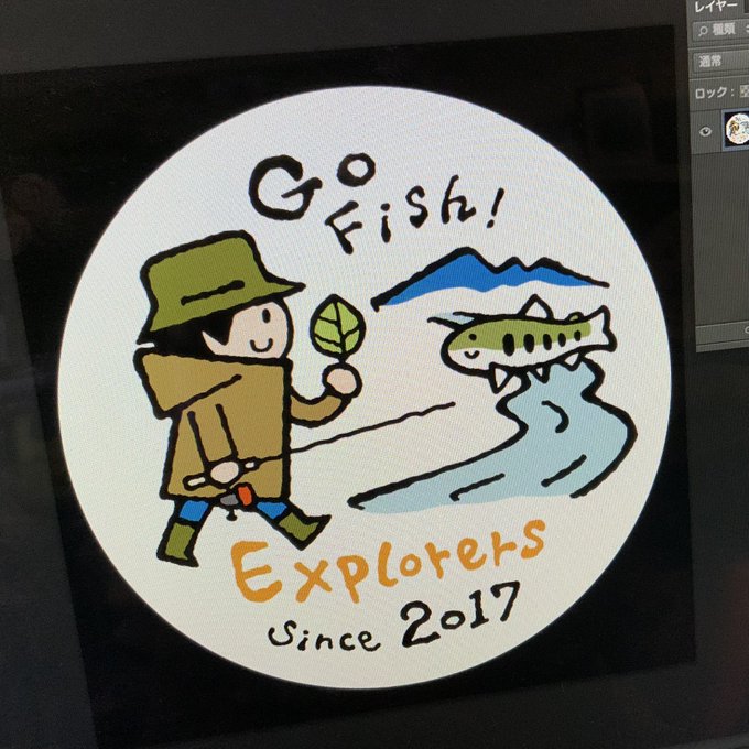 横浜元町のエクスプローラーズさんの販促グッズ用デザイン。 缶バッジやピンバッジなどで2020年からお使いいただいております。 #トラウト #explorers #横浜 #元町 #トラウトフィッシング #釣りイラスト #トキシン