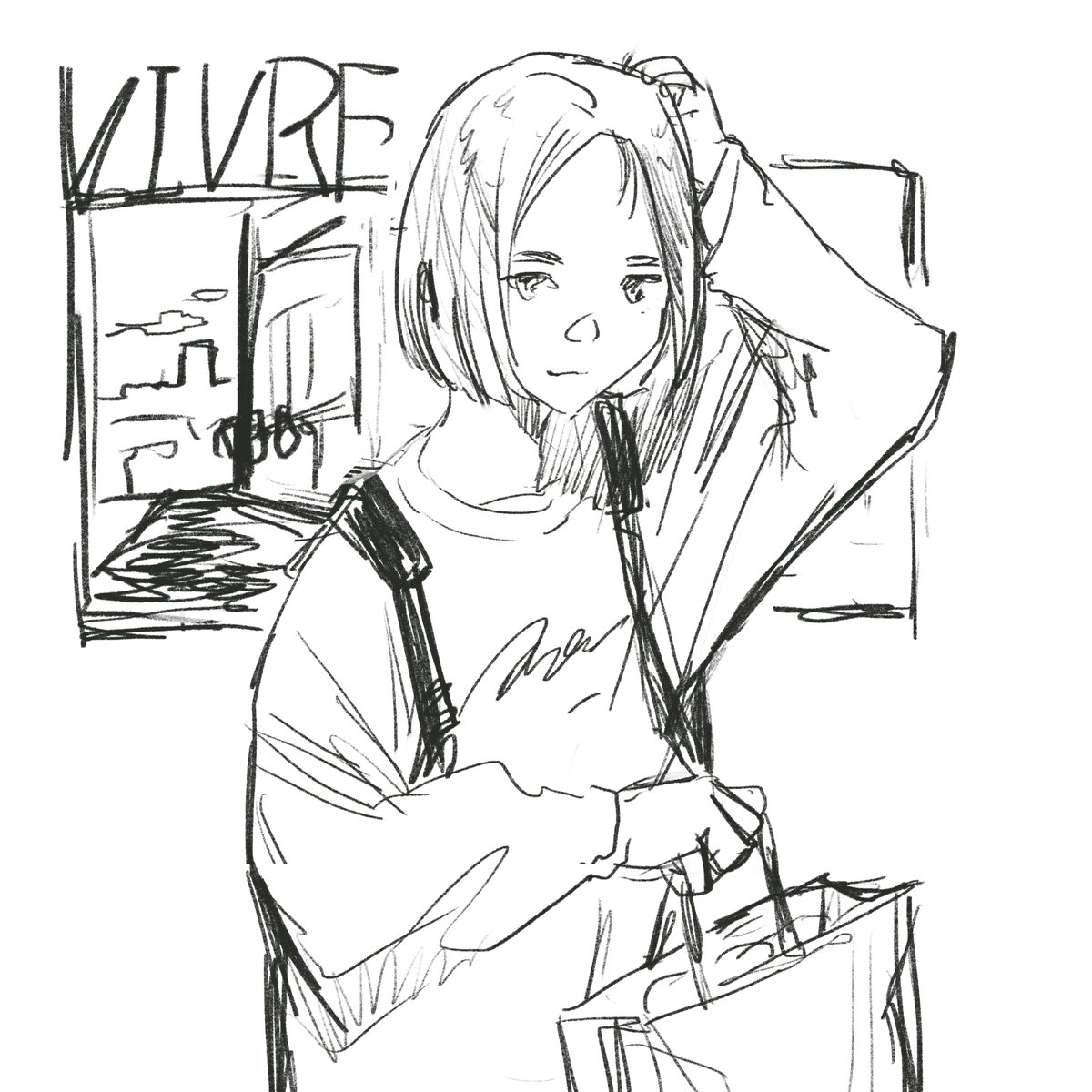 「今日は何を見ようか」 本日までおやすみします! 現場には別の作家さん在廊されてますので! #横浜ビブレ #絵描きさんと繋がりたい #私の絵柄が好みって人にフォローされたい #冬の創作クラスタフォロー祭り #横浜ビブレ #非公式