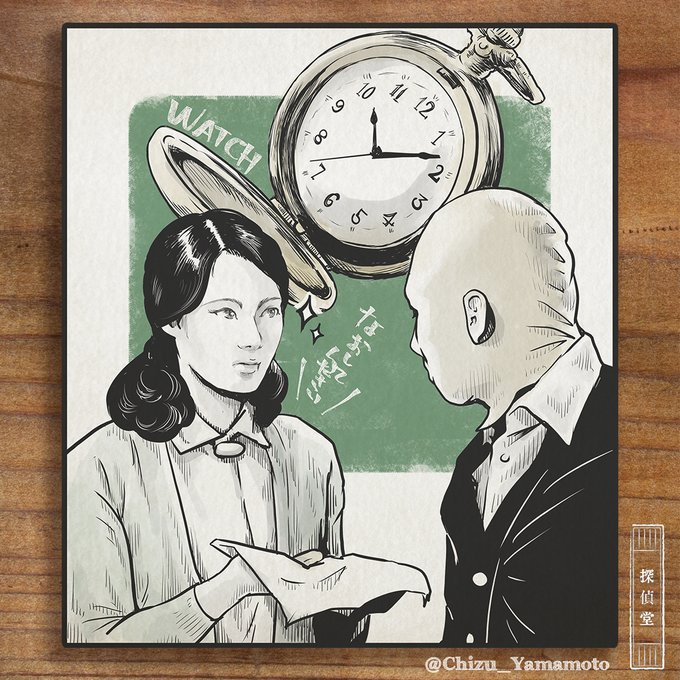 横溝ネタで #インクトーバー こと #横溝インクトーバー2021 #横溝トーバー2021 8日目はWATCH(時計) 『犬神家の一族』より、懐中時計の修理を頼む珠世を描きました。 #横溝インクトーバー #横溝トーバー #横溝美術部 #inktober #inktober2021 #インクトーバー2021