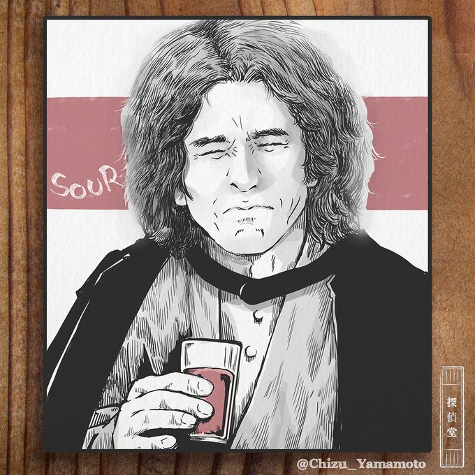 横溝ネタで #インクトーバー こと #横溝インクトーバー2021 #横溝トーバー2021 11日目はSOUR(サワー、酸っぱい) 映画『悪魔の手毬唄』より、秤屋ブドー酒の酸っぱさに顔をしかめる金田一耕助です。 #横溝インクトーバー #横溝トーバー #横溝美術部 #inktober #inktober2021 #インクトーバー2021