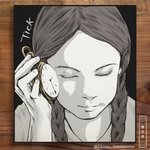 横溝ネタで #インクトーバー こと #横溝インクトーバー2021 #横溝トーバー2021 14日目はTICK(時計などのチクタク音、ダニ) 『犬神家の一族』より、佐兵衛の懐中時計の音に耳を寄せる少女時代の珠世。 #横溝インクトーバー #横溝トーバー #横溝美術部 #inktober #inktober2021 #インクトーバー2021