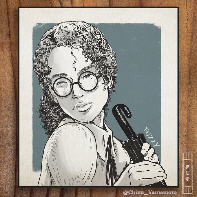 #インクトーバー こと #横溝インクトーバー2021 #横溝トーバー2021 21日目はFUZZY(曖昧、縮れた毛) 『七つの仮面』より、ちぢれっ毛の山内りん子です ちぢれっ毛と眼鏡、黒檀の洋傘がトレードマーク #横溝インクトーバー #横溝トーバー #横溝美術部 #inktober #inktober2021 #インクトーバー2021