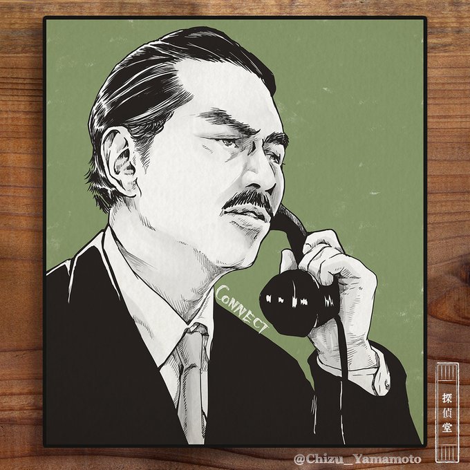 横溝ネタで #インクトーバー こと #横溝インクトーバー2021 #横溝トーバー2021 26日目はCONNECT(繋ぐ、接する、電話でつなぐ) 市川崑の映画シリーズの常連・加藤武さん扮する警部の電話場面。 #横溝インクトーバー #横溝トーバー #横溝美術部 #inktober #inktober2021 #インクトーバー2021