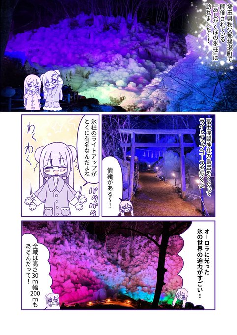 埼玉県秩父郡横瀬町で開催されている 『あしかくぼの氷柱(つらら)』を観光してきました❄️ オーロラに光った氷柱が幻想的で何時間でも居たくなります☺️ 夜は冷えるので暖かい服装で行くのがおすすめ👚 詳細は横瀬町の公式HPへ✨ yokoze.org/shisetsu/hyout… #横瀬町 #氷柱 #漫画が読めるハッシュタグ