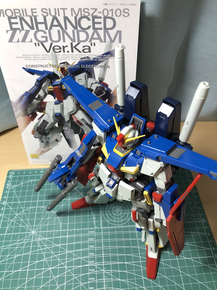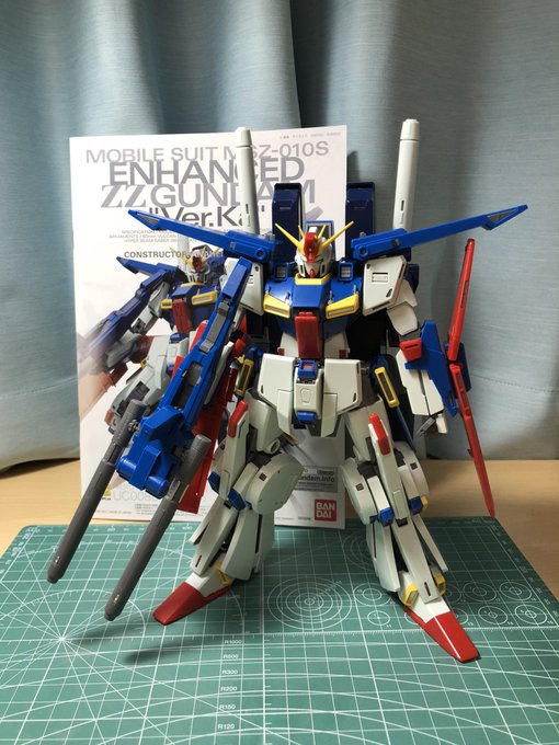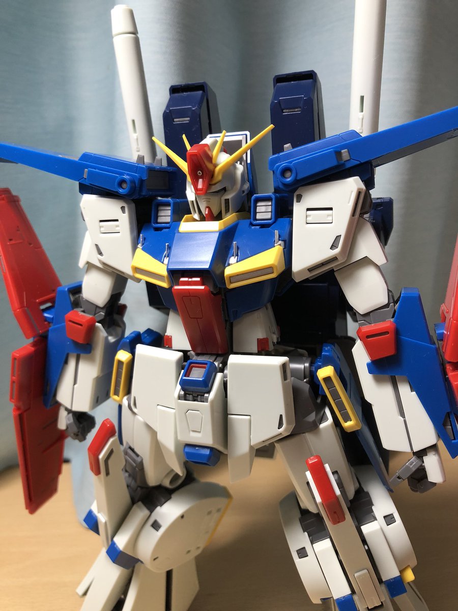 #ガンプラ #ガンダム #機動戦士ZZガンダム #MG強化型ZZガンダム 完成です🤗このキット、完成度高すぎませんか?🤭ホワイトやブルーの成形色がほんとに美しくて塗装とかする気にならない🤤非常にかっちりしていて組みやすく、スタイルも抜群で完全変形なんて、バンダイ凄すぎると改めて感じてしまった🤣