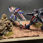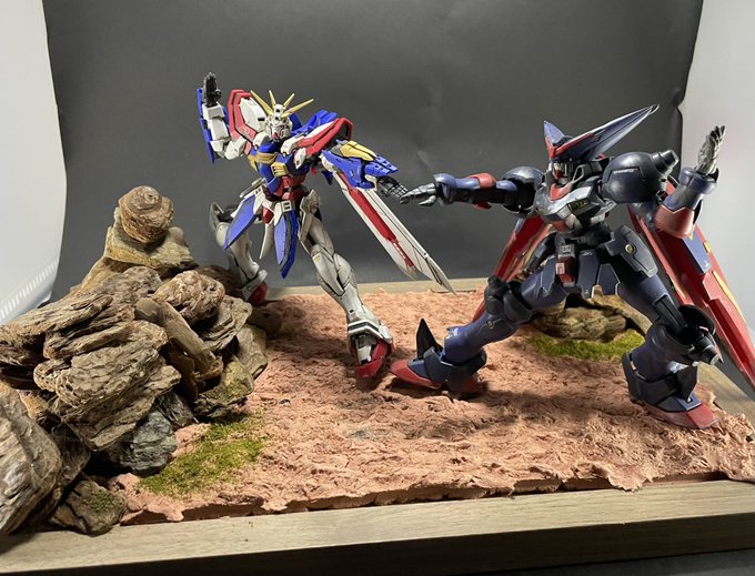 HGマスターガンダム完成! 以前作った自作ジオラマにRGゴッドガンダムと並べてみました😆 #機動武闘伝Gガンダム #マスターガンダム #ガンプラ好きな人たちと繋がりたい #ガンプラの画像貼るとRTされると聞いて