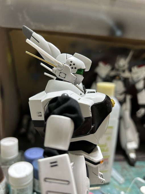 一月ぶりのツイ。 #マックスファクトリー の #イングラム と #クラブマンハイレッグ 全塗装で完成。イングラムのマーキングは #MODEROID から流用。クラブマンはつや消し後フィルタリングで汚しました。 #パトレイバー模型部 #機動警察パトレイバー #パトレイバー