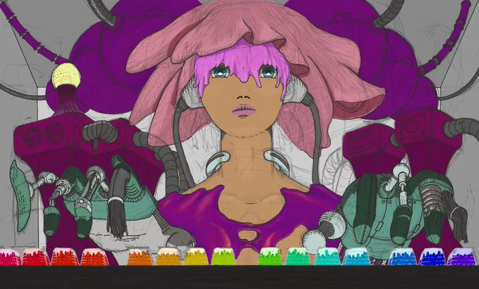 嫁に「緑色やめたら?」言われ、こんな感じでって言われた色に塗ってたらいつもの5倍くらい時間掛かって心折れそう。。。 #イラスト #イラスト好きさんと繋がりたい #絵描きさんと繋がりたい #機械女子