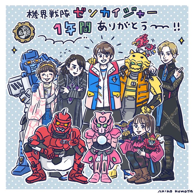 ゼンカイジャーありがとうございました…この1年間、本当に日々の生きる希望でした。 この1年間の感謝と愛を込めて描きました。ゾックスたちもステイシーくんも合わせてみんなで一緒にパーティ🥳🥳🥳🥳 毎週たくさんの笑顔をありがとう!!本当に大好き!! #ゼンカイジャー #機界戦隊ゼンカイジャー