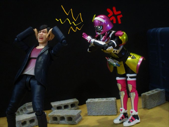 #夜のフィギュア撮影会 8/17テーマ「騒」(新規) 『騒ぎを起こしちゃ…ダメーッだよっ!!』 #オモ写 #toyphotography #t_shf #仮面ライダーエグゼイド #仮面ライダーポッピー #檀黎斗