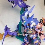 武器 神槍 天舞丸 太刀 天翔丸 戦戟×4 6本腕を展開 胴体と腕の接続はカーテンレールのリングを使用 6本腕の全てが腕であり脚であり武器であるエスピラルの特徴をなんとか落とし込めました #七人の欠落した超将軍 #欠落世界へ誘う声