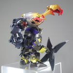 『隠密忍者 璽武 夜隠 (ジム ナイトシーカー)』 バロックハンドのコールによって召喚された、忍者璽武の影法師。 過去に使用した「禁断の忍術」がゲートを通して発現し、その姿は禍々しく変貌している。 #欠落世界へ誘う声 #七人の欠落した超将軍 #SD共栄圏