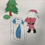 猫サンタがプレゼントを配ってるよ🎁 #クリスマス #猫 #ゆるキャラ #イラスト #絵 #絵描きさんと繋がりたい #絵柄が好みって人にフォローされたい #猫好きさんと繋がりたい #次女の作品