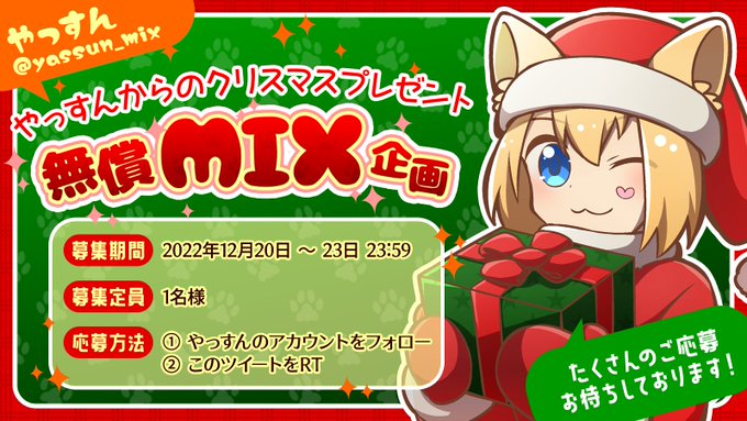 【クリスマス企画🎄】 今年もクリスマスということで、 抽選でmix無償券が1名様に当たります♪ ※参加はRT+フォロー これからの録音でも大丈夫です! ぜひ、たくさんのご応募お待ちしております🐶 #無償mix #歌い手さんMIX師さん絵師さん動画師さんとPさんと繋がりたい #歌ってみた
