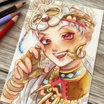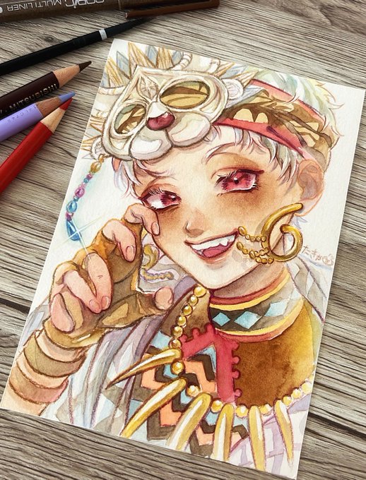 寝落ちしてしまった… 遅刻したけどキャリムお誕生日おめでとう🎉 太陽みたいなキャリムが大好きだよー!! D100のキャリムがとても好きだったのでそのお衣裳で✨ #カリム・アルアジーム生誕祭2023 #歌え踊れカリム・アルアジーム誕生の宴2023 #ツイステファンアート
