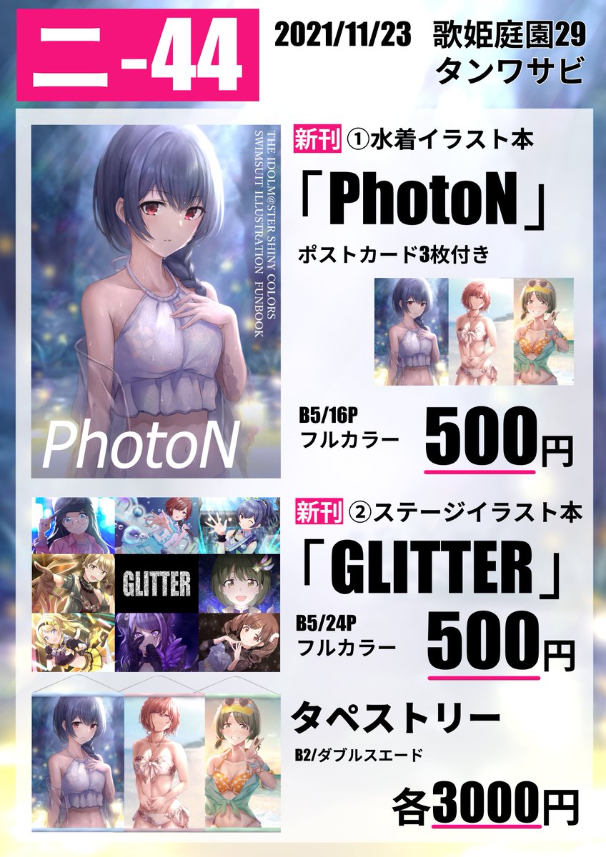 #歌姫庭園29 新刊です!咲耶さんメインのギャグで A5サイズ全文28ページ500円です! スペースは『シャ15』です 既刊も持っていきますのでよろしくお願いしまーす!! サンプルはこちらtwitter.com/maturinojunbi/…